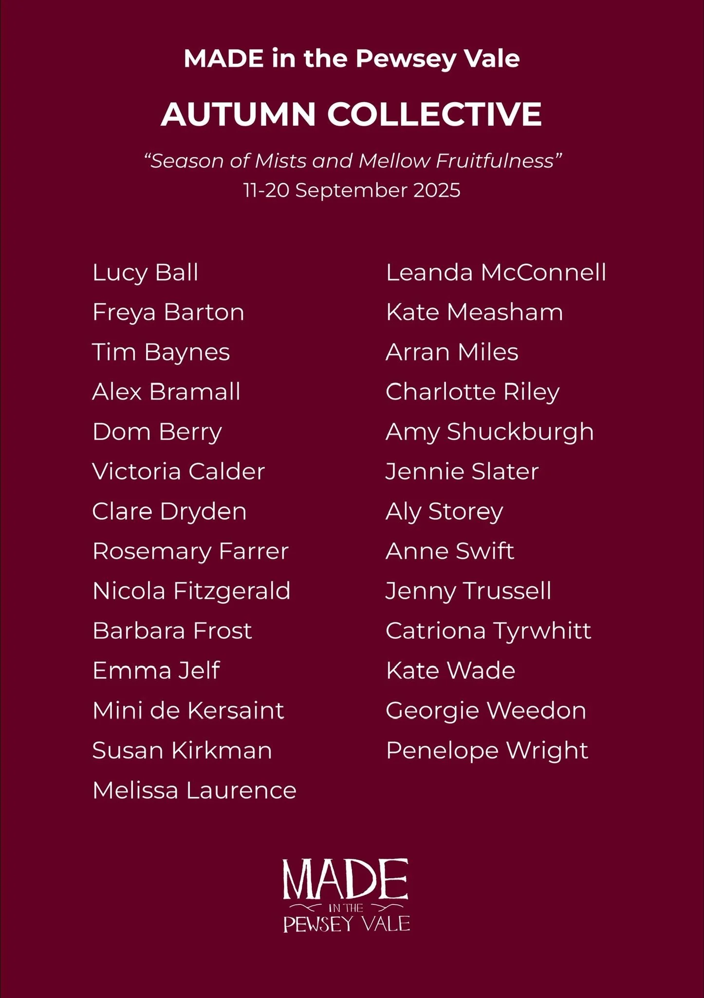 ‘Seasons of Mists and Mellow Fruitfulness’, a group exhibition at MADE in the Pewsey Vale from 11 - 20 September 2025