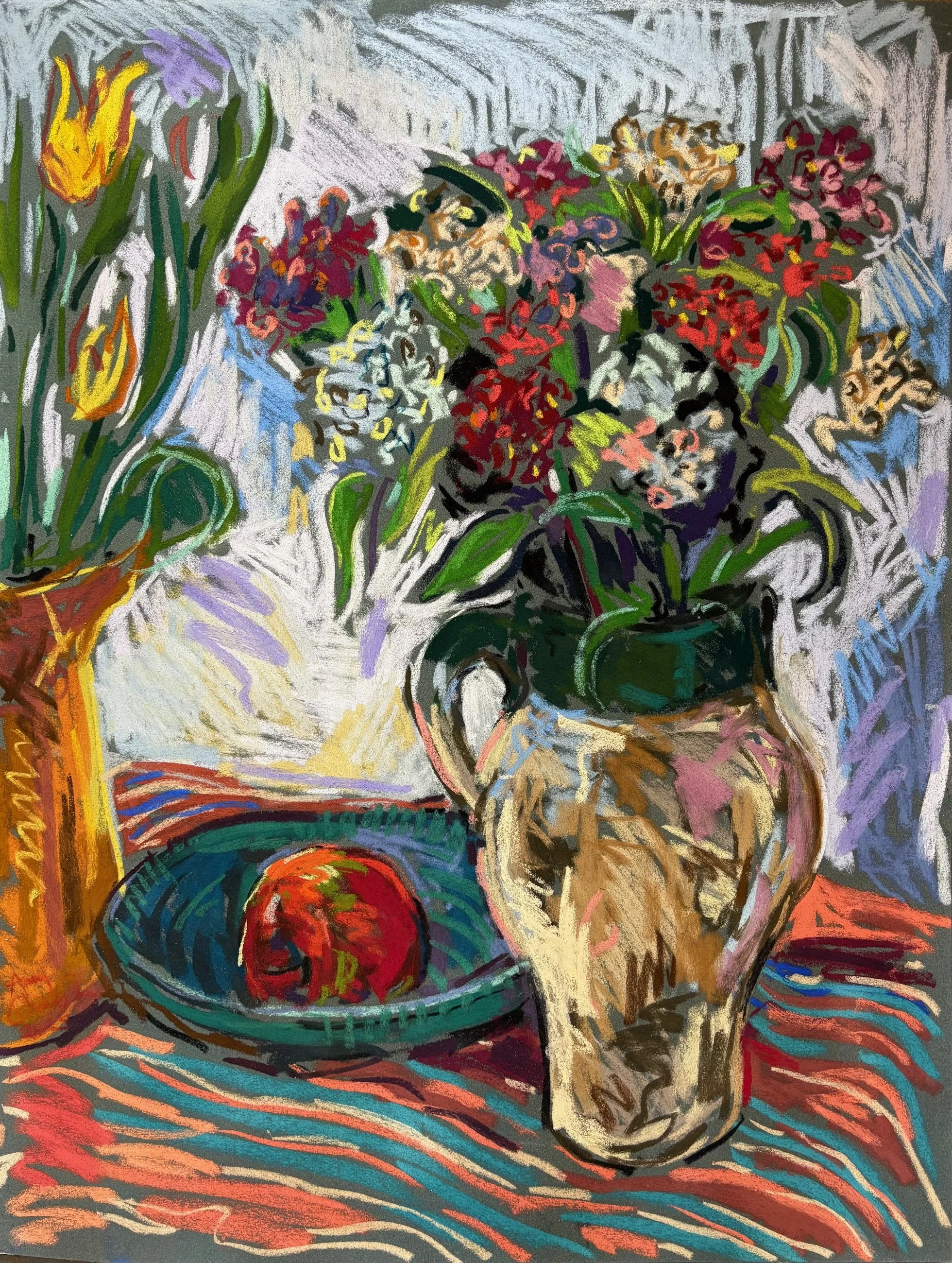 Sweet Williams and apple, 65x50cm, pastel, £500 unframed